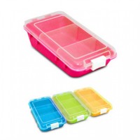 Material complies with FDA standard 塑料符合美國食品及藥物管理局 FDA 標準 。 透明度極高、容易識別盒內物品 。 附有活動格片,適合不同用途使用